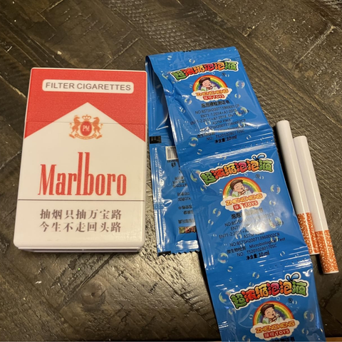 Sí, su diseño compacto está inspirado en el tamaño de una cajetilla real, lo que lo hace aún más divertido y llamativo. A diferencia del tabaco, no contiene nicotina ni produce humo, solo burbujas. Puede usarse en interiores sin dejar olor ni residuos.